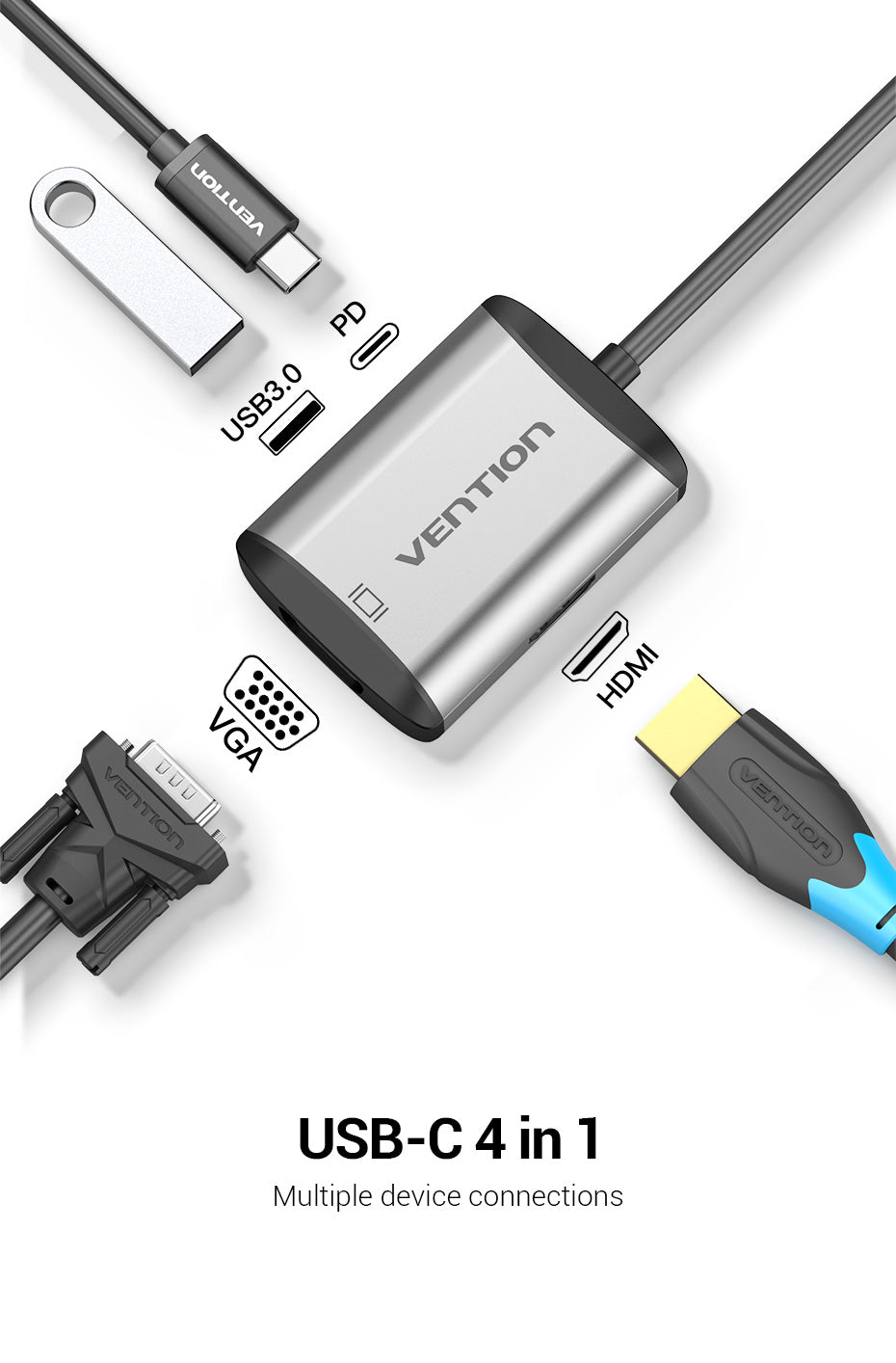 USB-C 4 en 1 Connexions multiples à des appareils