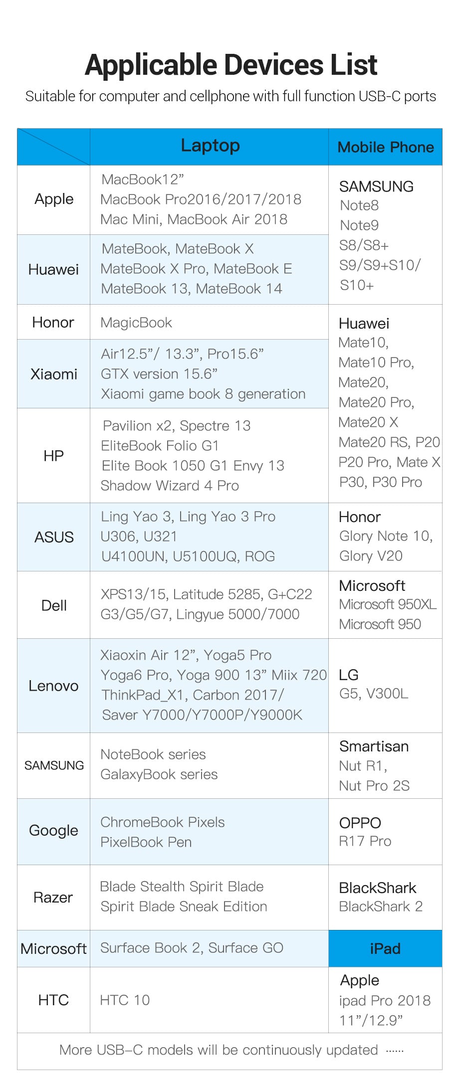 Convient pour ordinateur et téléphone portable avec ports USB-C complets